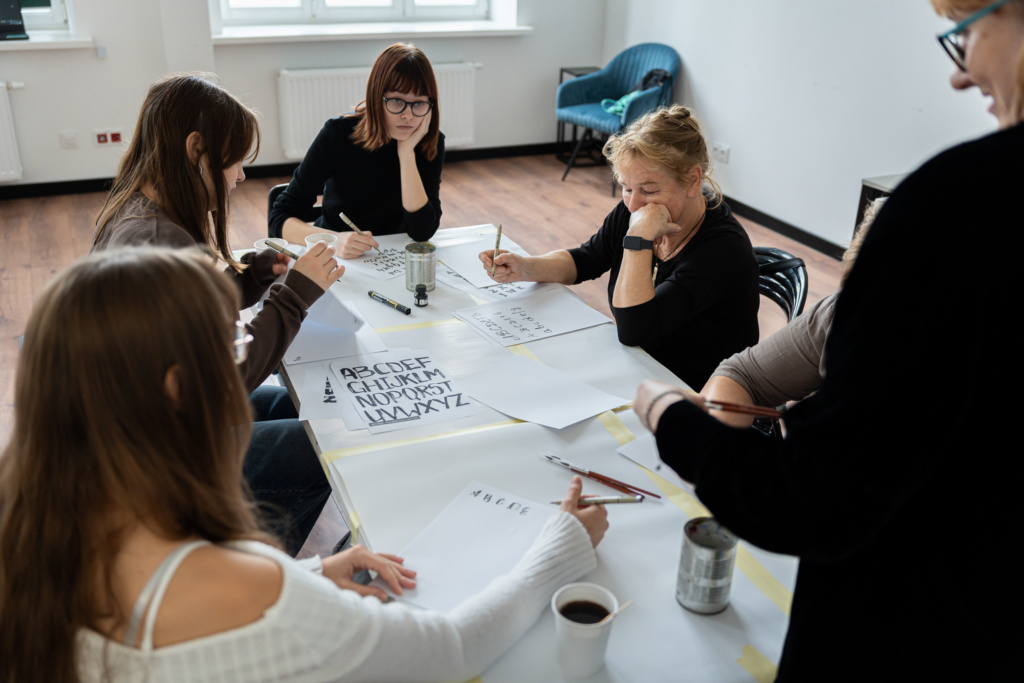 Podczas trzeciego, finałowego dnia Nocy Bibliotek zaprezentowano najnowsze gry planszowe oraz karciane, które wkrótce znajdą się w zbiorach specjalnych naszej biblioteki. O godzinie 13.00 rozpoczęły się warsztaty „Kaligram – typografia emocjonalna” prowadzone przez Magdalenę Toczydłowską. Uczestnicy poznali ideę kaligramu – formy łączącej słowo i obraz – oraz spróbowali przełożyć emocje na język typografii, tworząc swoje własne artystyczne prace.